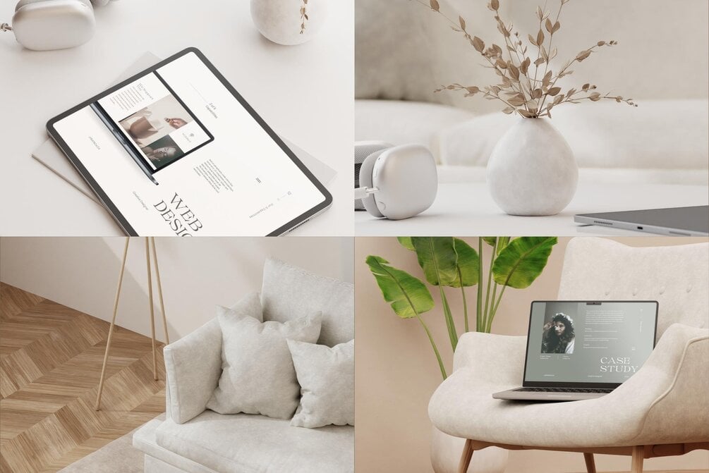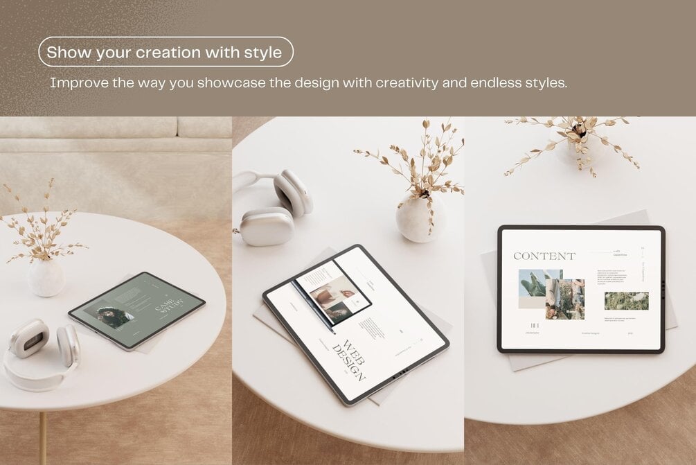 Included 20 Photos & 15 Photoshop mockup images for iPad, laptop, iMac, A4 paper, and business cards. Save more time because you can easily customize the images to reflect your brand and business. It’s time to show your latest work in a premium design-led setting.